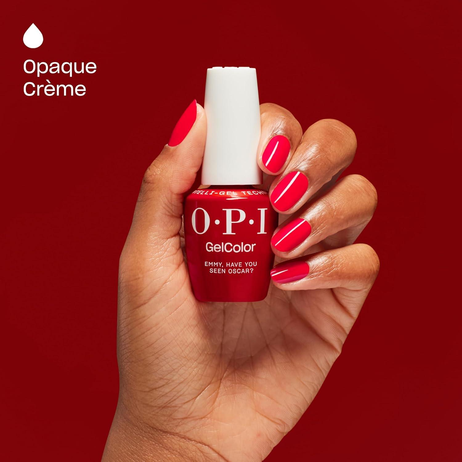 OPI GelColor LED Cure Gel Nail Polish | Red Shades | Salon-Quality Shine, Long-Lasting Wear | Easily Soak Off Removal | Vegan & HEMA Free | 0.5 Fl Oz(Emmy Have You Seen Oscar? | Opaque Bright Cool Red)