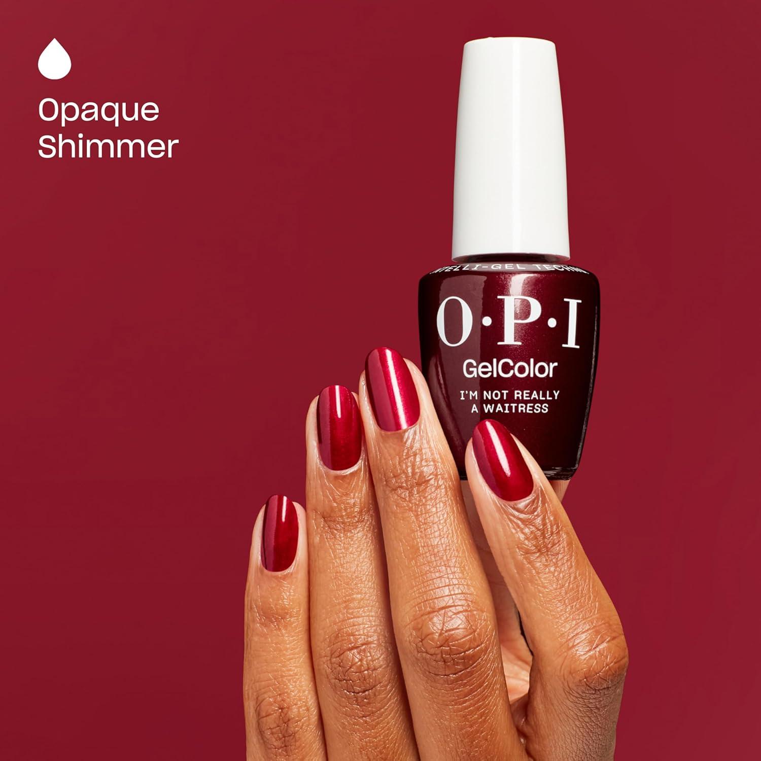 OPI GelColor LED Cure Gel Nail Polish | Red Shades | Salon-Quality Shine, Long-Lasting Wear | Easily Soak Off Removal | Vegan & HEMA Free | 0.5 Fl Oz(I’m Not Really a Waitress | Opaque Dark Red Pearl Shimmer)