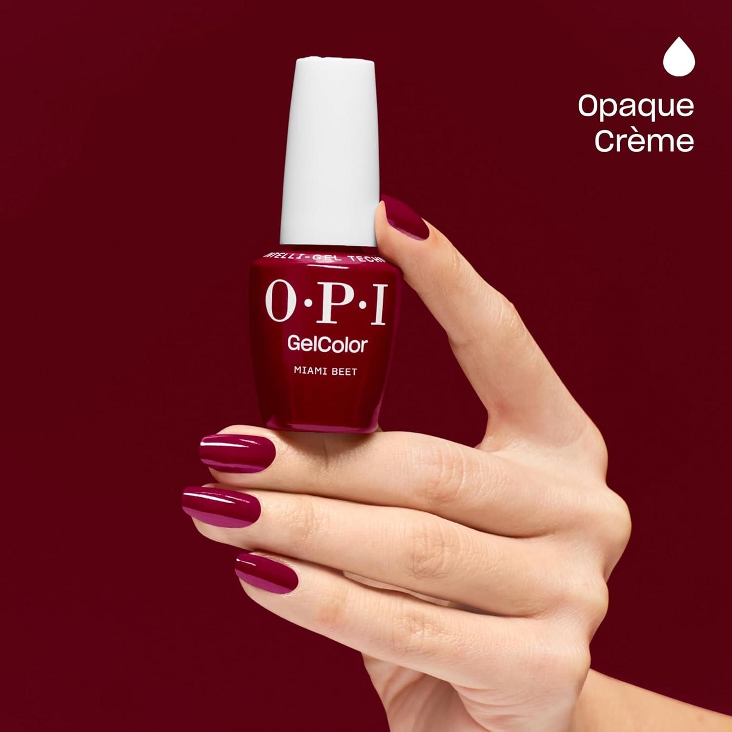 OPI GelColor LED Cure Gel Nail Polish | Red Shades | Salon-Quality Shine, Long-Lasting Wear | Easily Soak Off Removal | Vegan & HEMA Free | 0.5 Fl Oz(Miami Beet | Opaque Dark Warm Red-Violet)