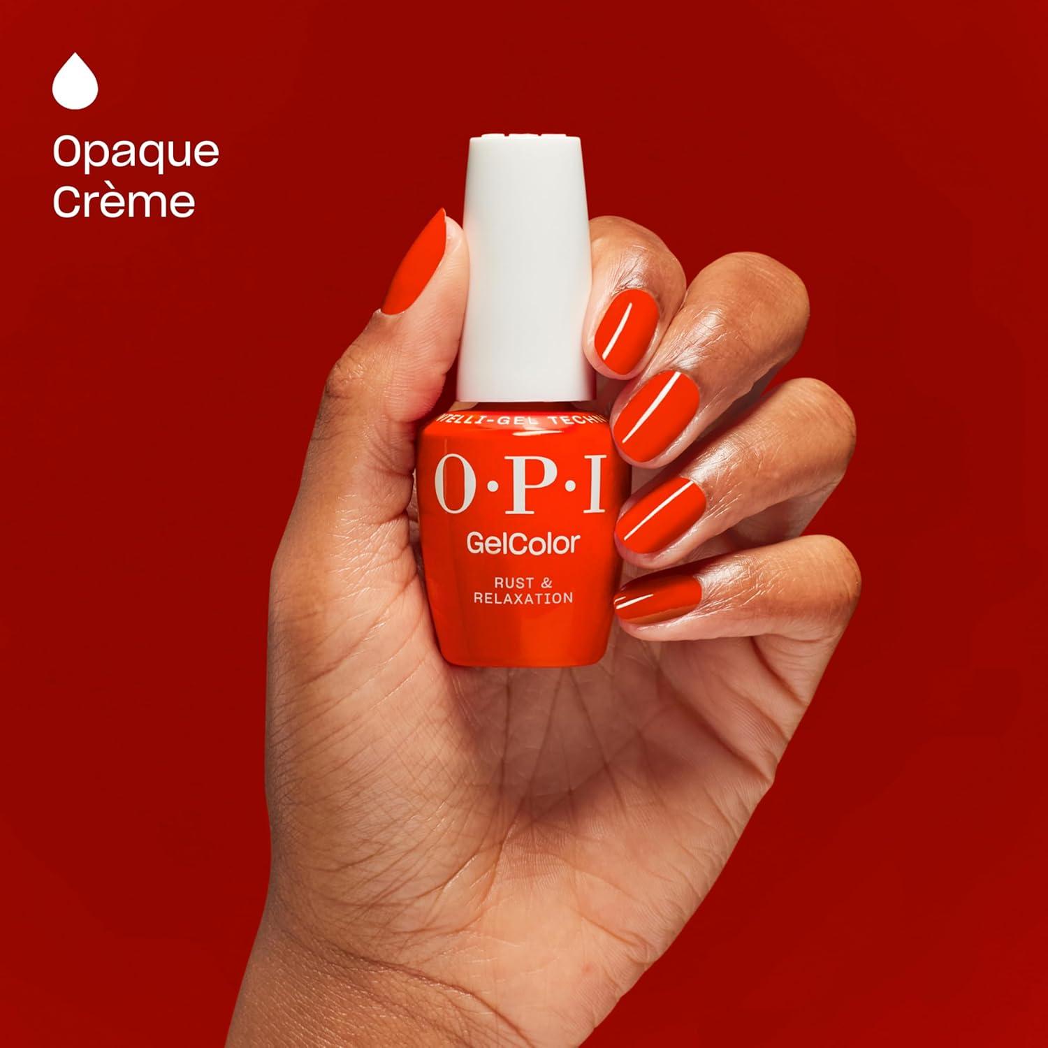 OPI GelColor LED Cure Gel Nail Polish | Red Shades | Salon-Quality Shine, Long-Lasting Wear | Easily Soak Off Removal | Vegan & HEMA Free | 0.5 Fl Oz(Rust & Relaxation | Opaque Bright Warm Red)