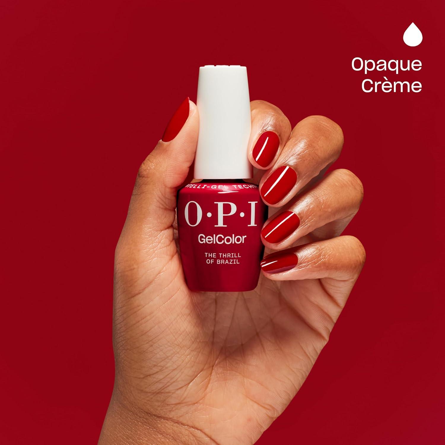 OPI GelColor LED Cure Gel Nail Polish | Red Shades | Salon-Quality Shine, Long-Lasting Wear | Easily Soak Off Removal | Vegan & HEMA Free | 0.5 Fl Oz(The Thrill Of Brazil | Opaque Bright Warm Red-Orange)