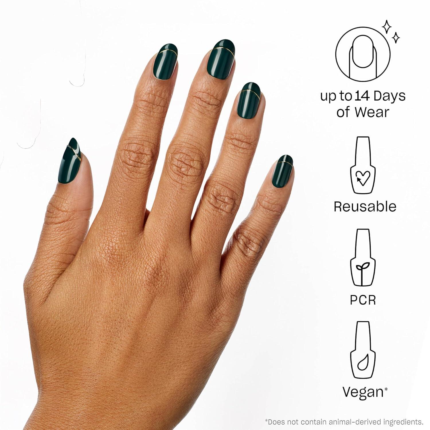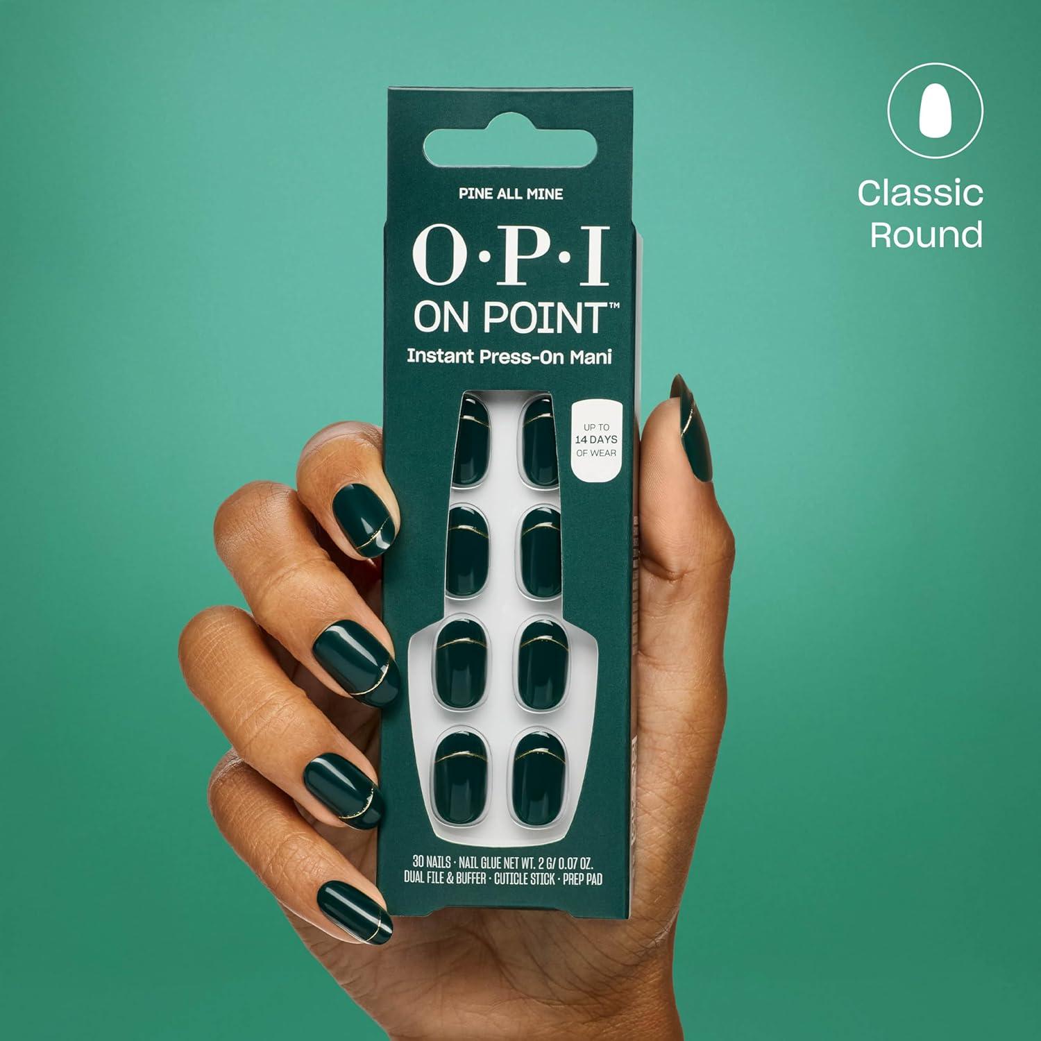 OPI On Point Holiday 2025 Shades | Short Squoval & Round Classic Accent Nail Art Press On Nails | 30 Count with Glue | Long Lasting, Reusable, Non-damaging | Amazon Exclusive(Pine All Mine | Short Round Dark Green & Gold Accent)