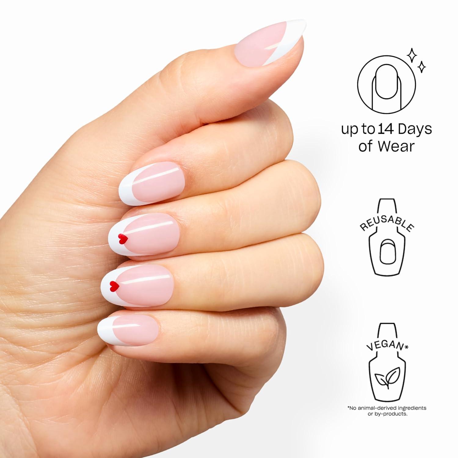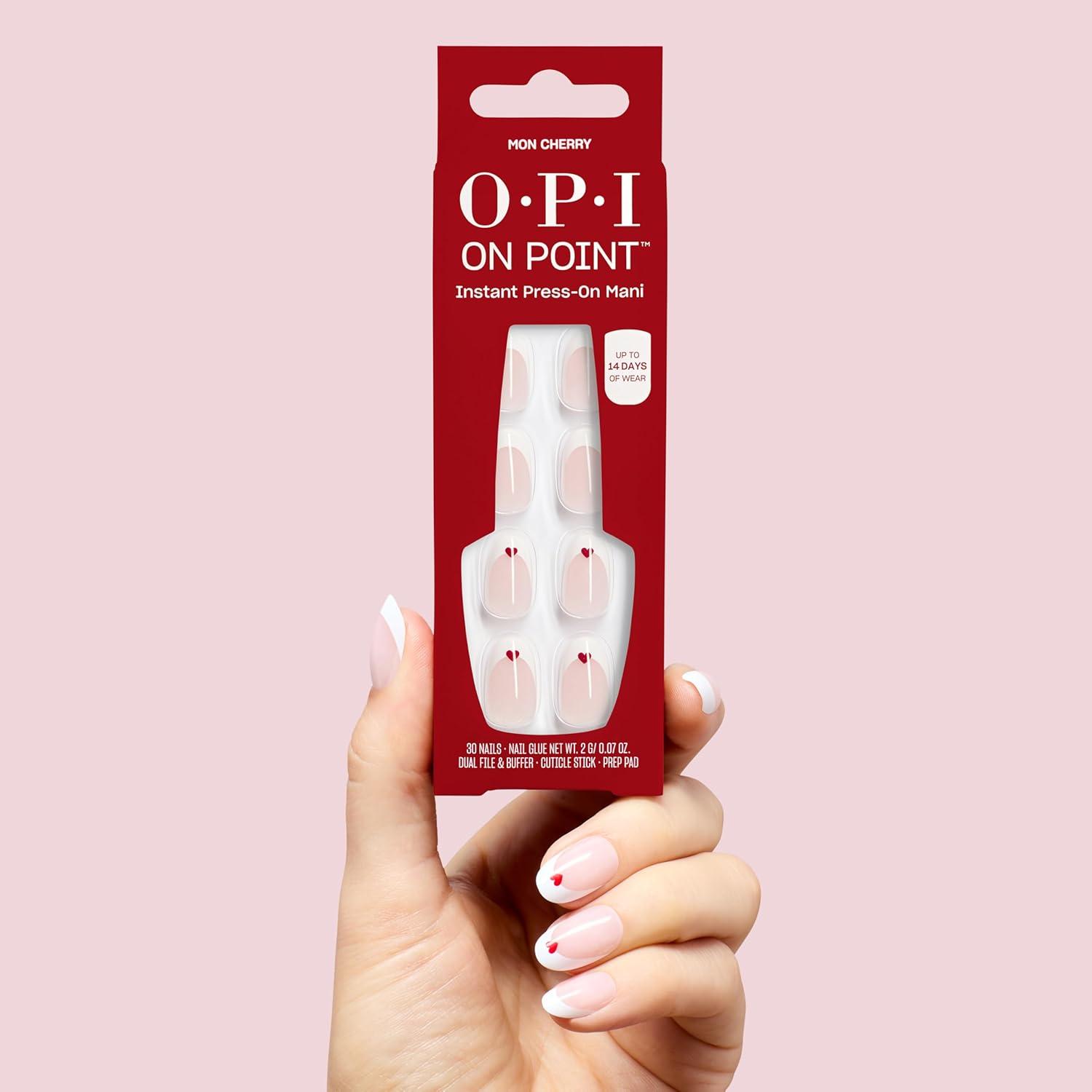 OPI On Point Mon Cherry | Short Round Opaque White French Tip with Red Hearts Nail Art Press On Nails | 30 Count with Glue | Long Lasting, Reusable, Non-damaging | Spring 2026 Shades