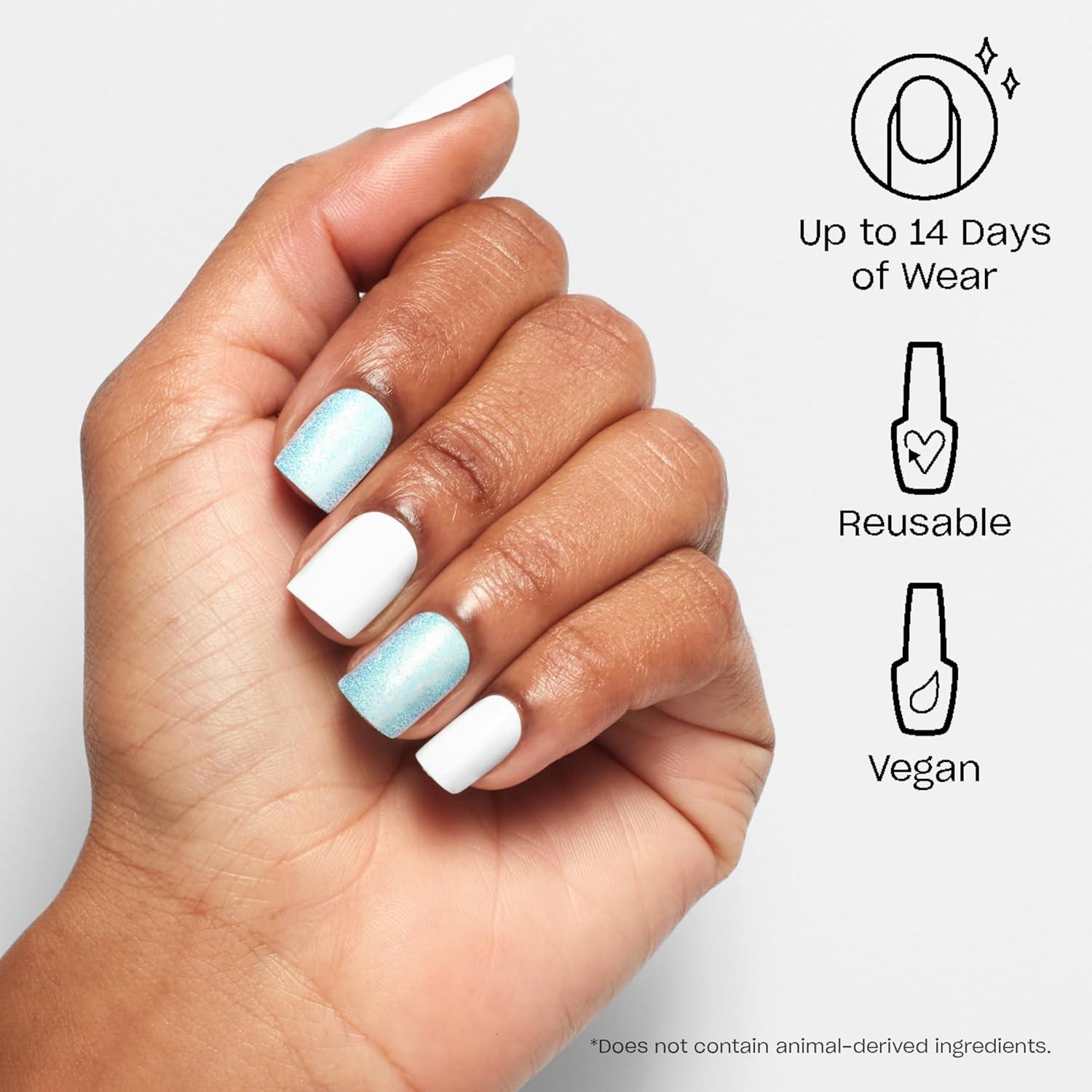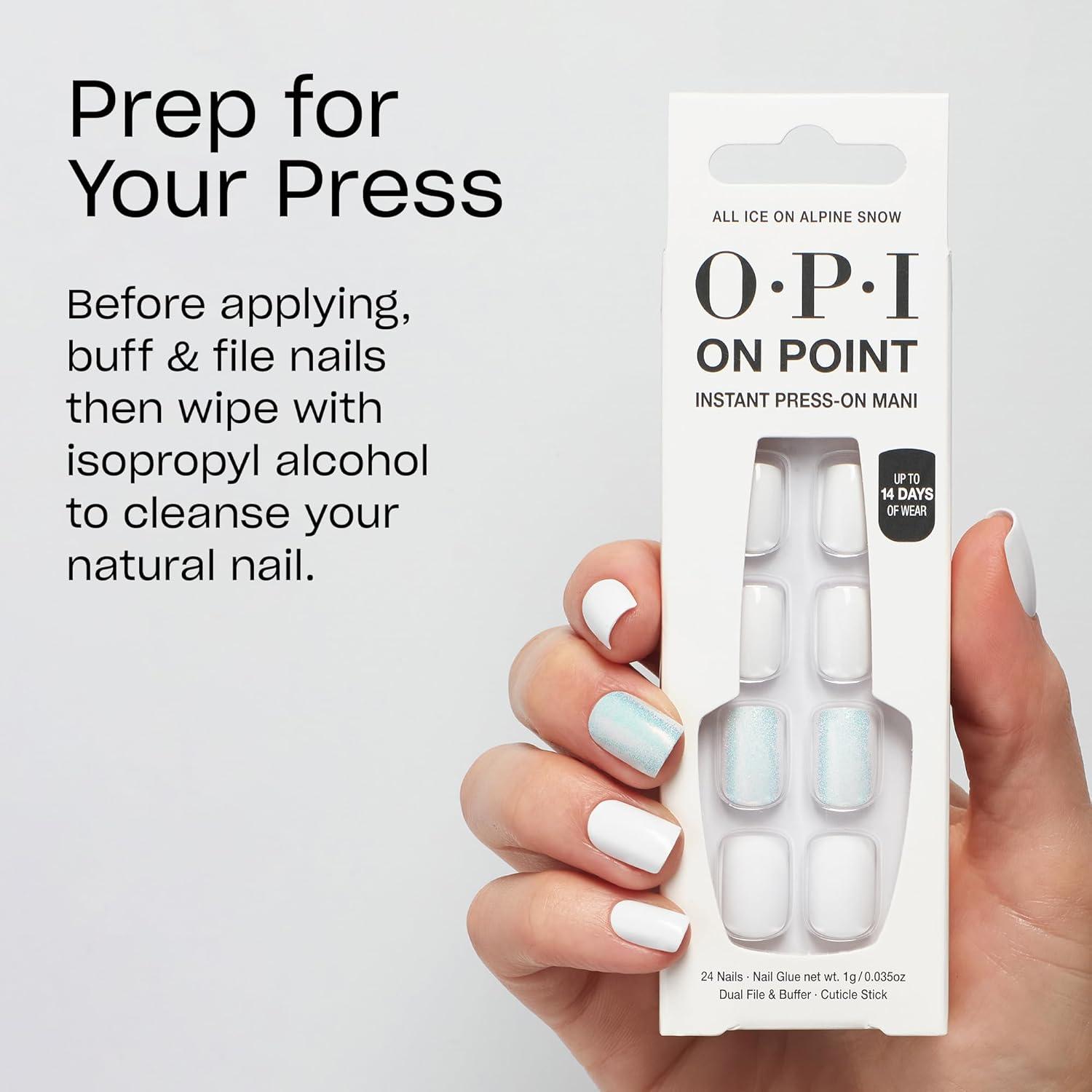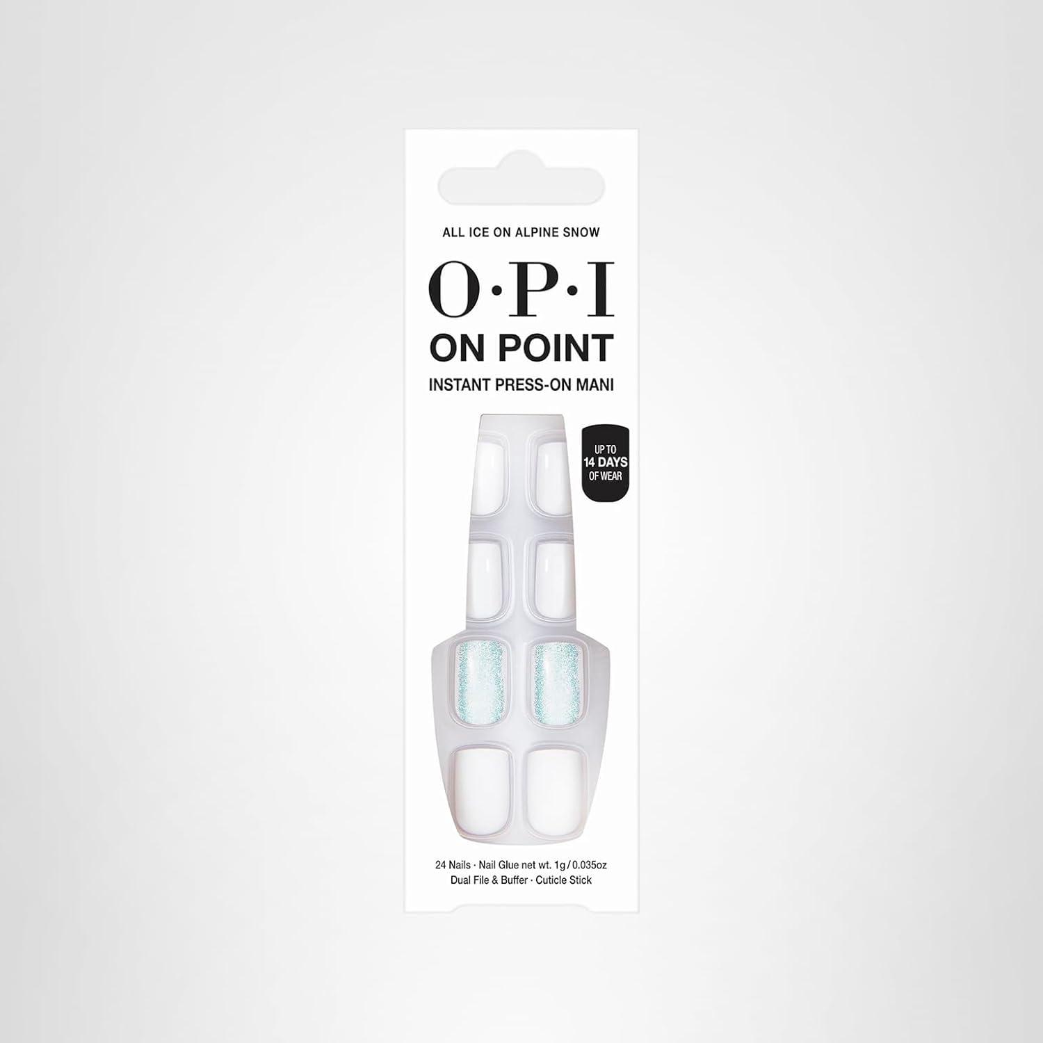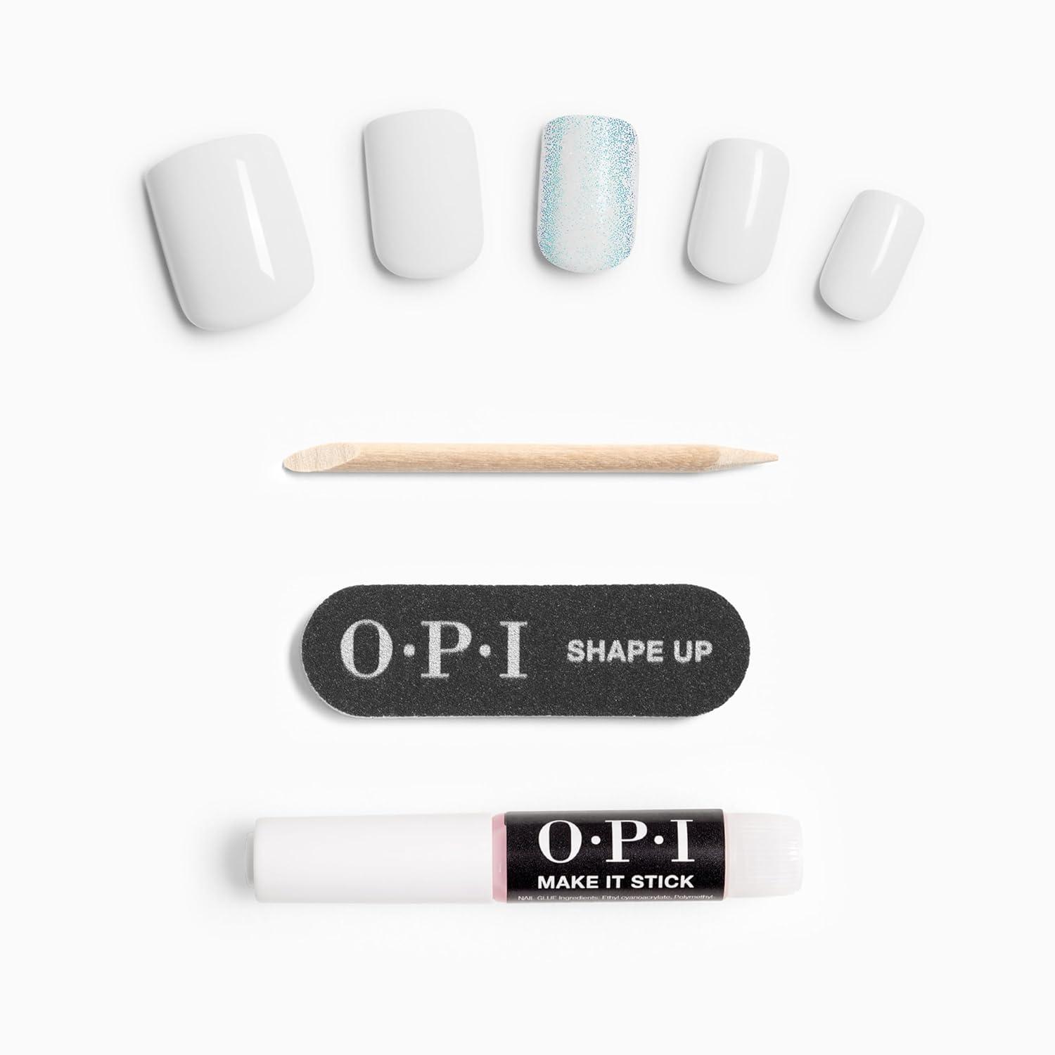 OPI On Point Press On Nails | Short Round Classic & Accent Nail Art Press On Nails | 24 Count With Nail Glue | Instant Press-On Mani | Long Lasting, Reusable, Non-damaging(All Ice on Alpine Snow | White & Accent Blue Shimmer)