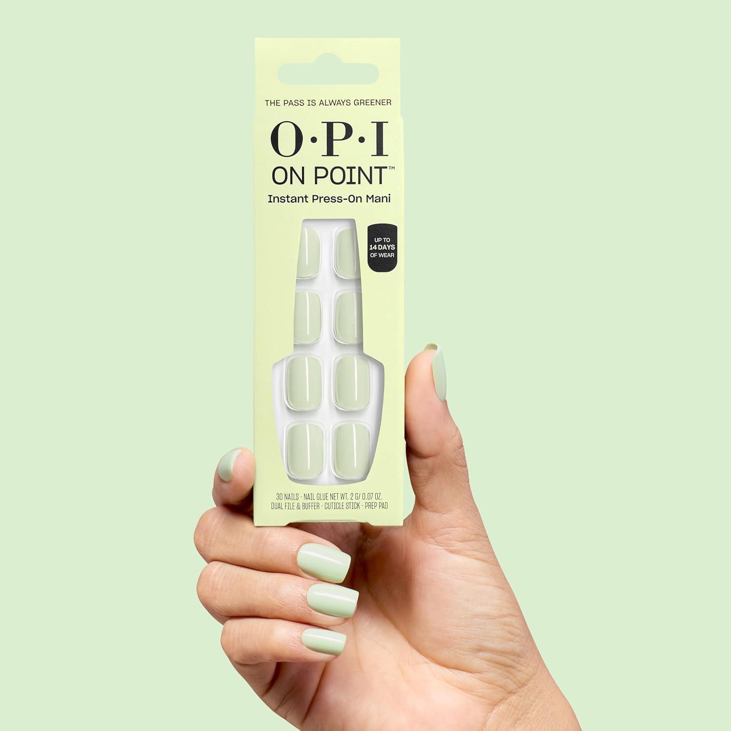 OPI On Point The Pass is Always Greener | Short Squoval Opaque Bright Green Press On Nails | 30 Count with Glue | Long Lasting, Reusable, Non-damaging | Spring 2026 Shades